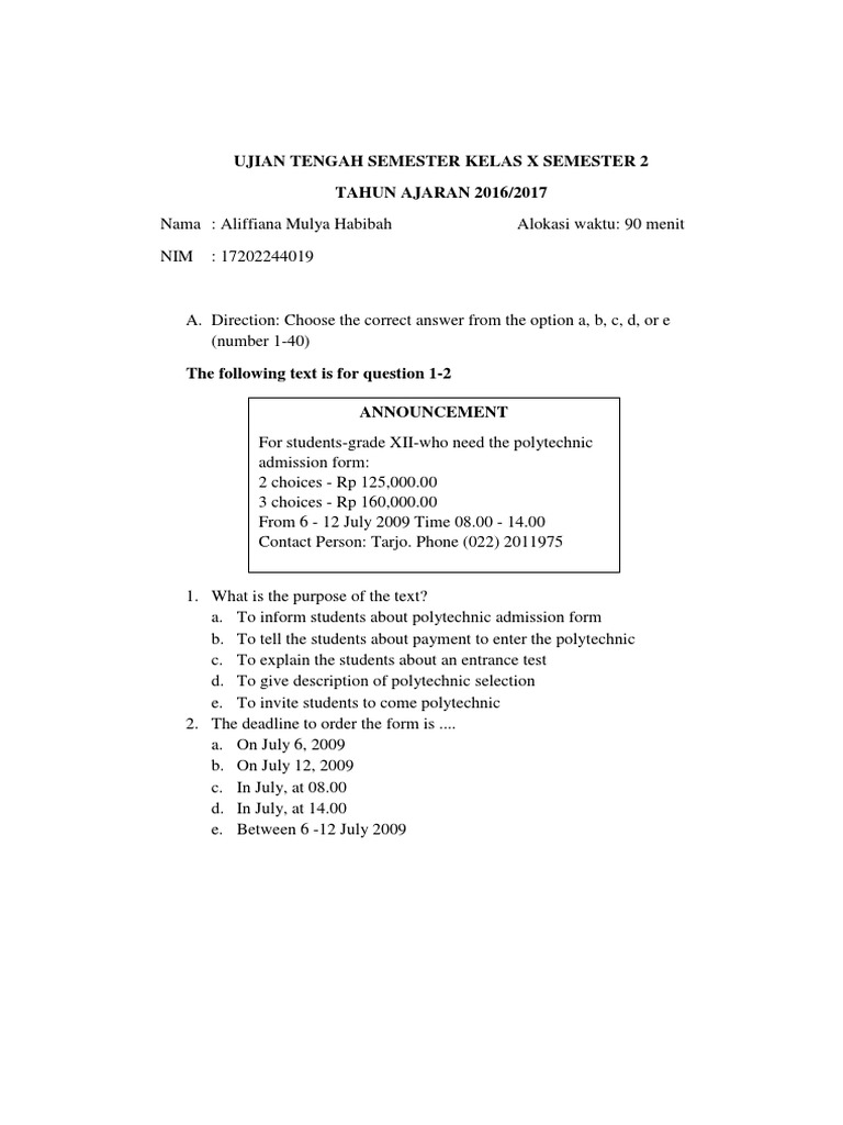 Bank Soal Essai Non Objektif Kelas 10 : Soal Bahasa Inggris Semester Genap Sma Kelas 10 Pilihan Ganda Dan Essay / Bank soal essai non objektif kelas 10 :. Siti munajiyah text for questions number 1 to 5 once upon a time, there lived in japan a peasant and his wife. Ketaatan dan kepatuhan dengan aturan sekolah. Soal bahasa indonesia kelas 7. Jelaskan yang anda ketahui tentang pengertian bank! Bank soal essai non objektif kelas 10 :